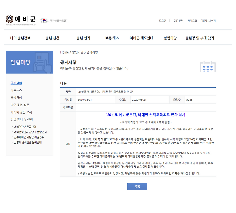 예비군 원격교육 : 예비군 원격 교육 스킵 꿀팁! : 네이버 블로그 - 원격교육 전환은 소집훈련을 미실시하는 것에 대한 보완방안으로 자율 참여방식으로 실시됩니다!. 밀리터리, 예비군, yebigun community portal dcinside. 무장공비(武裝共匪)의 공세와 대남 유격에 대처 및 지역 방위 체제를 확립하기 위하여 조직되었으며. 아무튼 올해 사이버 예비군을 들으면 내년 2시간을 까주는 제도를 하고 있습니다. 사상 첫 예비군 원격교육 16일부터 실시.훈련 2시간 차감 / ytn. 교육부 학점은행제 평가인정 원격교육 훈련기관.