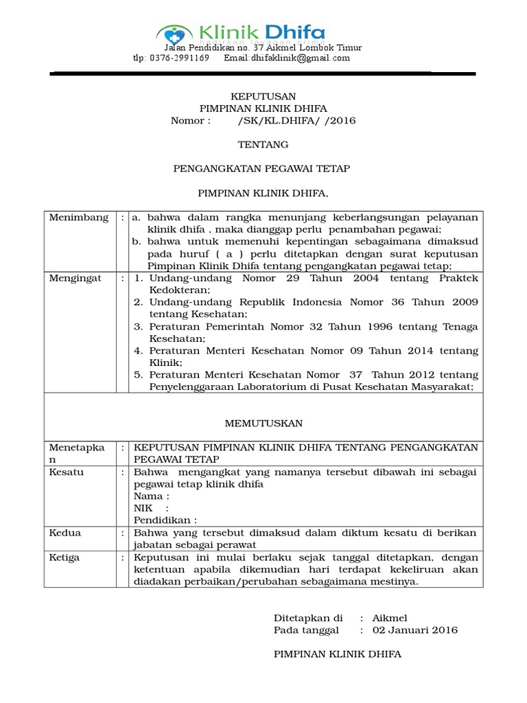 Contoh Surat Keputusan Pengangkatan Jabatan : Contoh Sk Surat Keputusan Pengangkatan Pegawai Akutansi : Nanti akan ditampilkan gambarnya, hanya saja di bagian ini kita juga akan lihat sama sama contoh kalimat atau pesan di bagian isi surat ini.. 10 contoh surat keputusan pengangkatan karyawan dll lengkap contoh surat keputusan. Nanti akan ditampilkan gambarnya, hanya saja di bagian ini kita juga akan lihat sama sama contoh kalimat atau pesan di bagian isi surat ini. Sehinnga dengan begitu biasanya sikaryawan tersebut dapat mendapatkan sebuah fasilitas hak dan juga kewajiban dari perusahaannya, misalnya : Keputusan surat pengangkatan karyawan adalah surat yang diputuskan. Atas dasar penilaian dan pengambilan kebijakan tertentu karyawan yang memiliki potensi dan linier keilmuan yang cukup membuat karyawan diangkat menduduki posisi yang lebih baik.